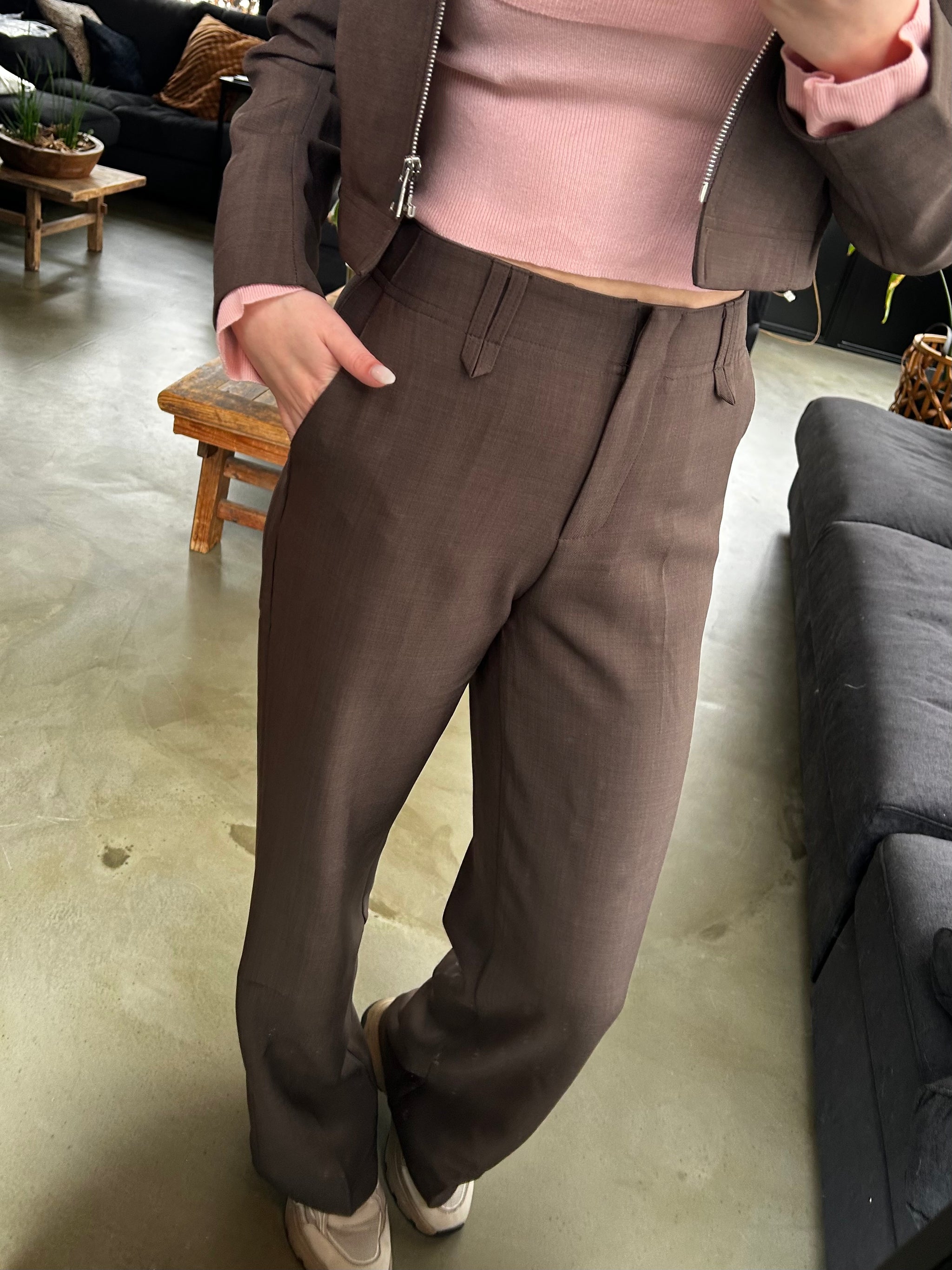 Dit is de kleur van het seizoen! TALL GIRL APPROVED Deze pantalon is van een fijne zachte stof en heeft een oog voor detail. Met de leuke lusjes van de broek om net even wat anders te zijn. Het is een diepe bruine kleur die perfect te combineren is én heel leuk te stijlen is met het bijpassende jasje (zelfde kleur en zelfde materiaal)