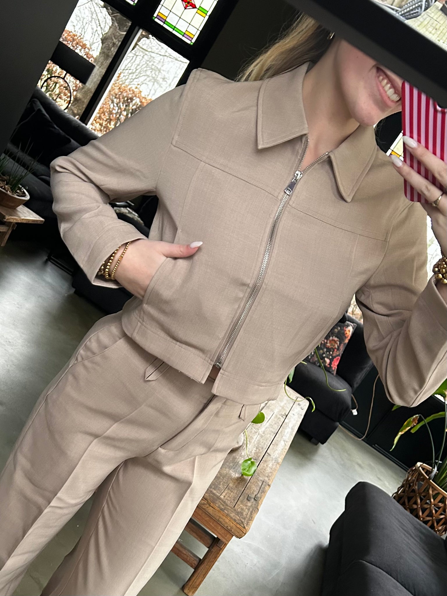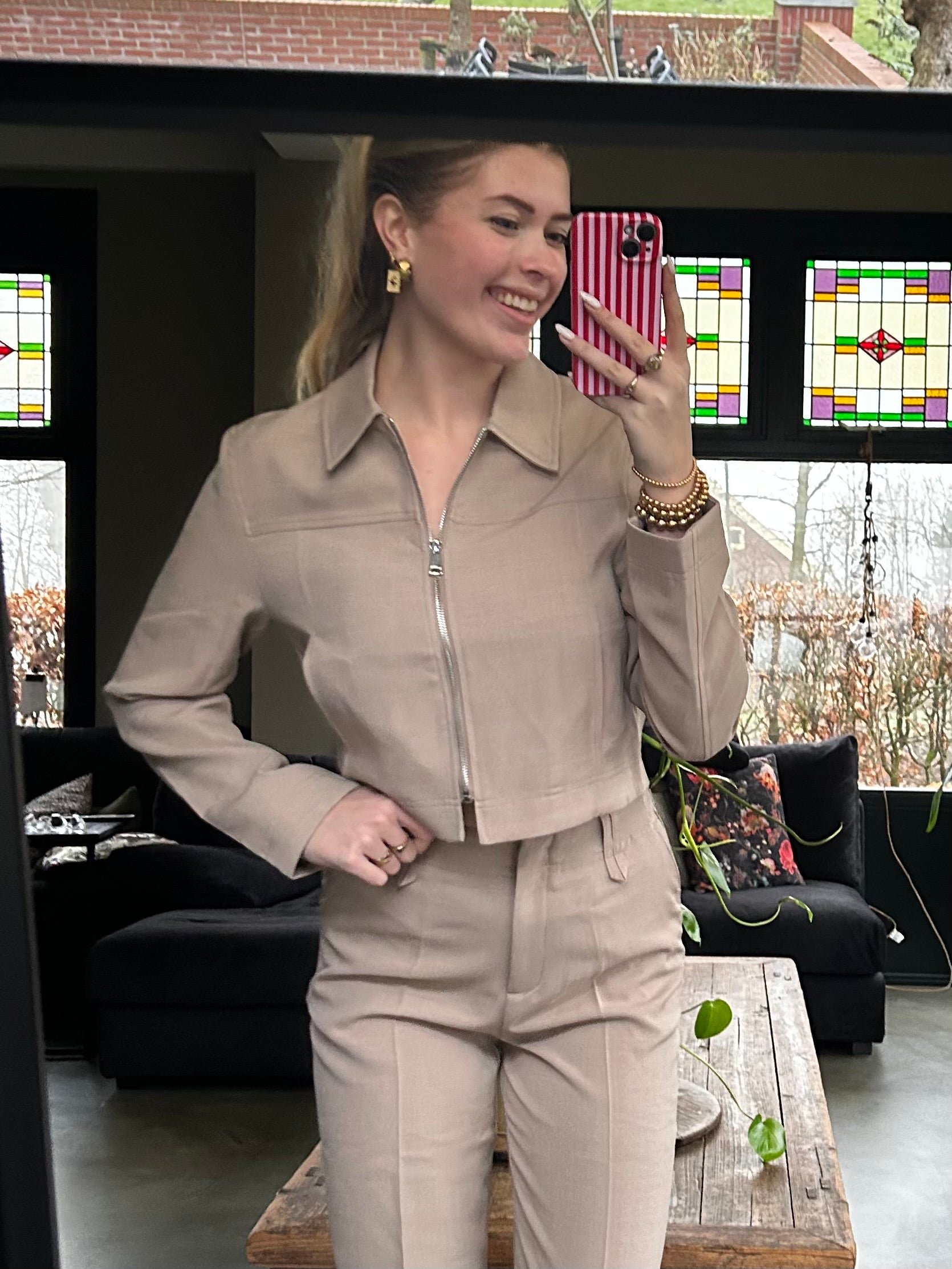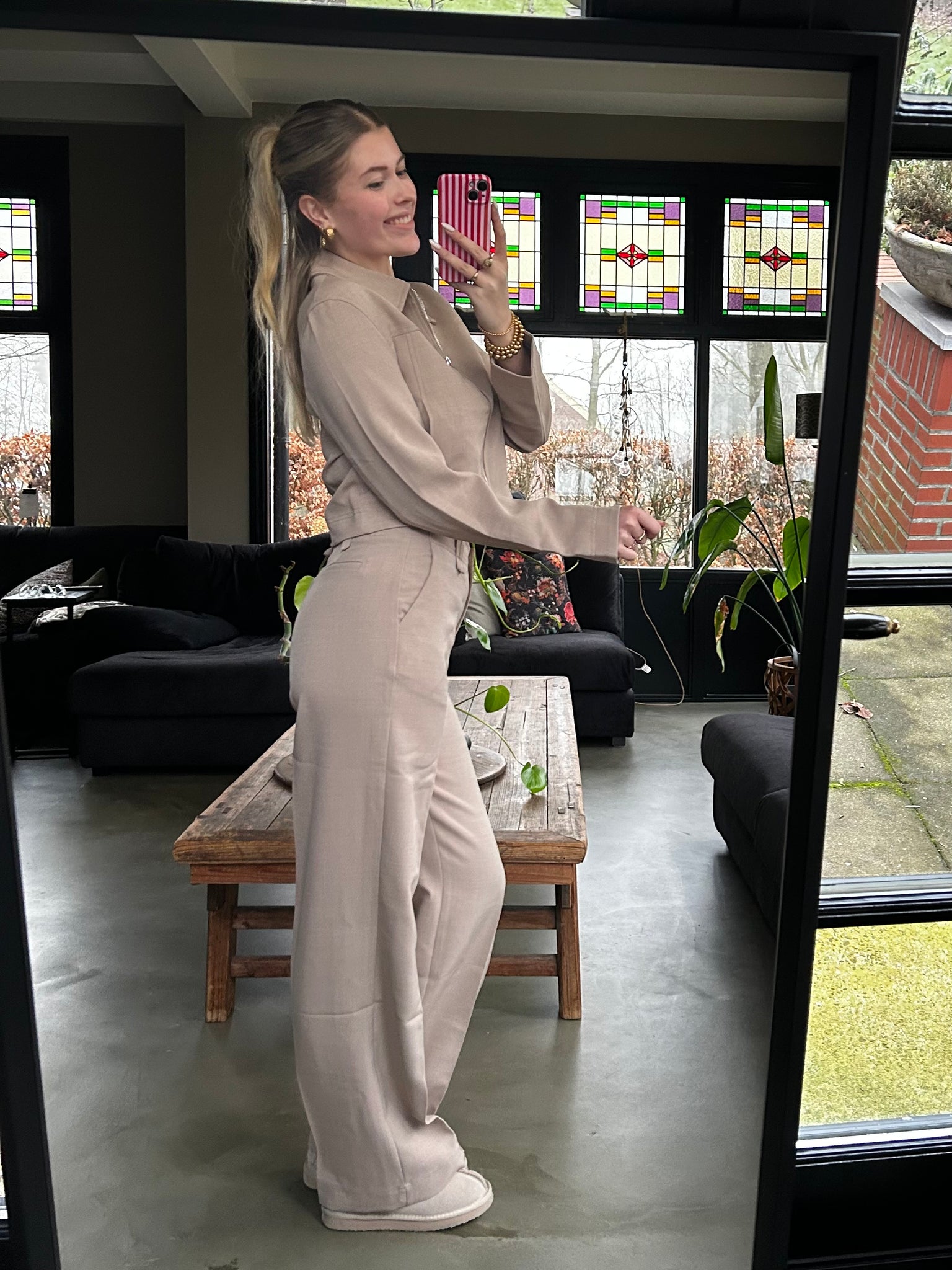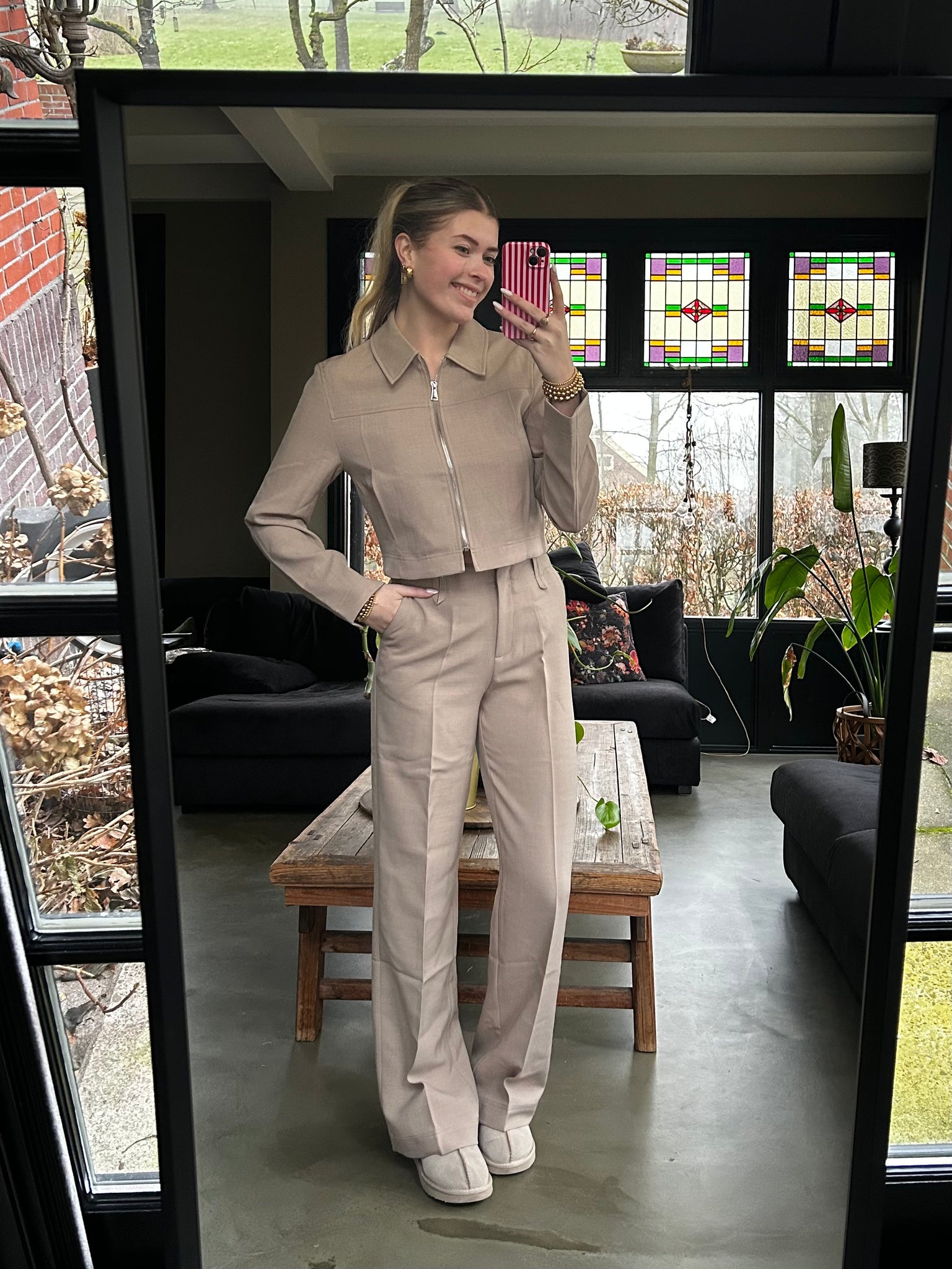 Deze jas is van een fijne zachte stof en heeft een oog voor detail. Met de subtiele jaszakken aan de voorzijde om net even wat anders te zijn. Het is een zachte taupe kleur die perfect te combineren is én heel leuk te stijlen is met onze bijpassende pantalon (zelfde kleur en zelfde materiaal)