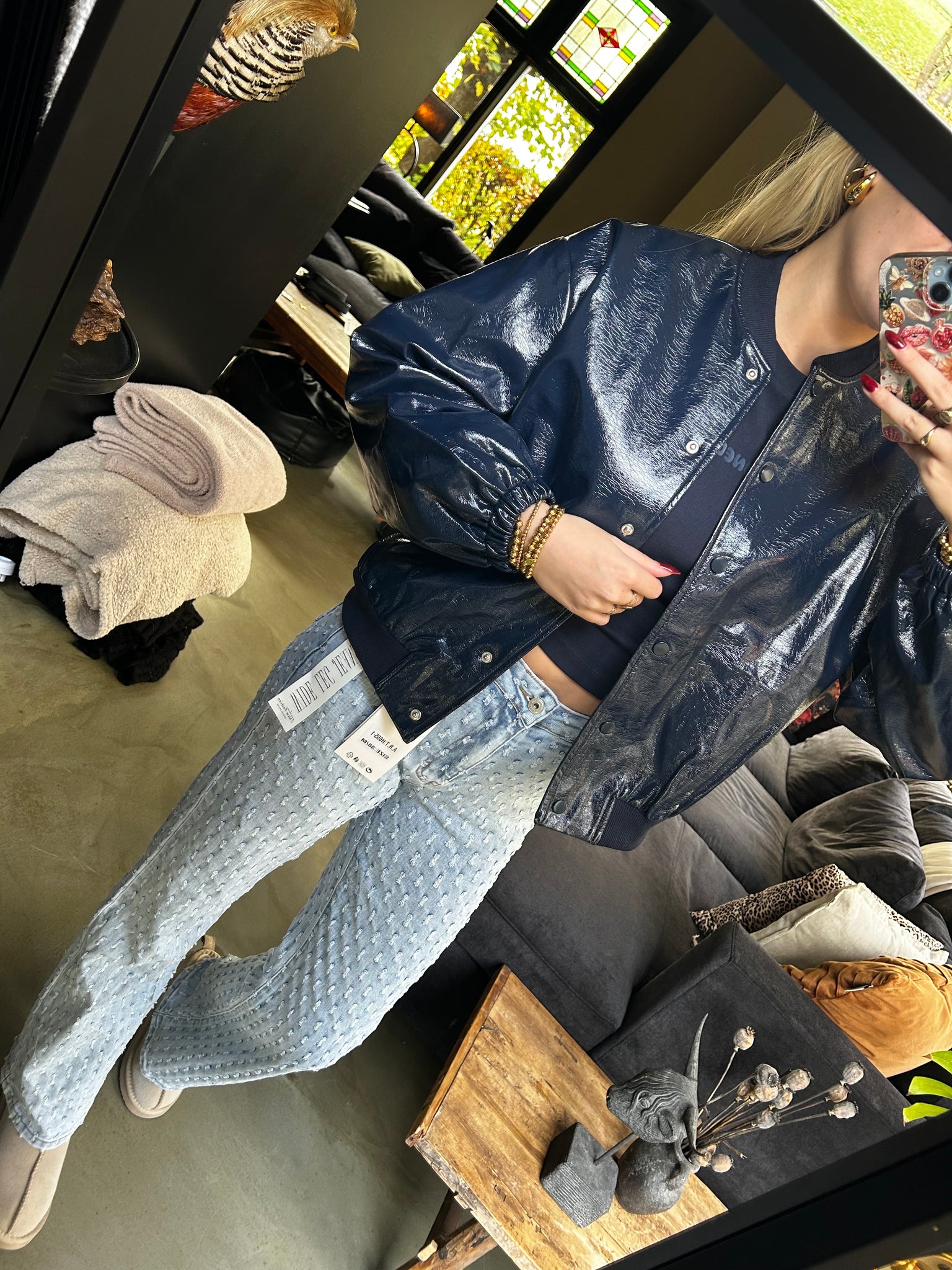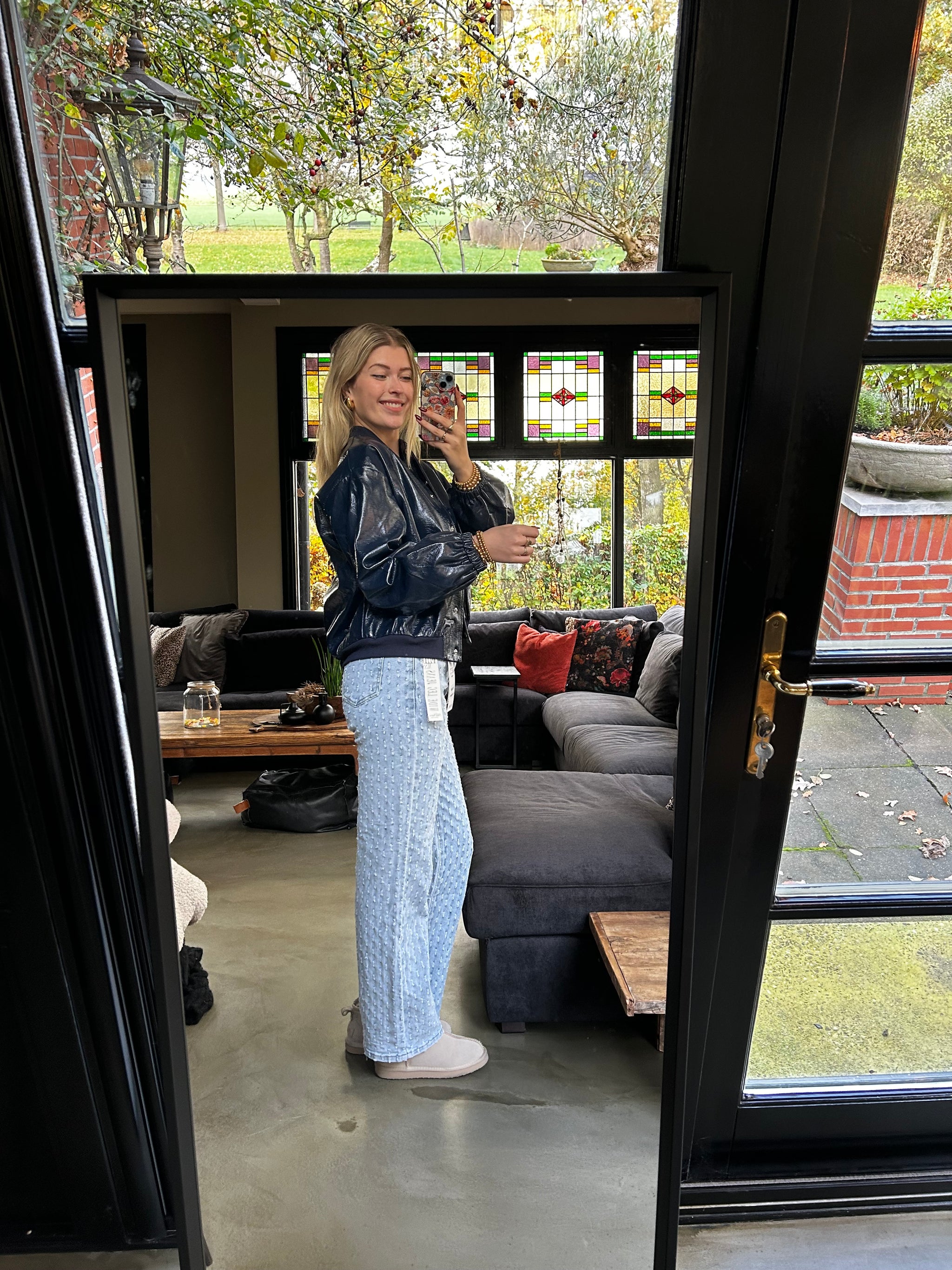 Deze marine blauw glossy bomberjas is hét statement piece voor dit seizoen. De glanzende laklook geeft de jas een moderne, edgy uitstraling, terwijl de bomber fit zorgt voor een stoere, streetstyle vibe. De elastische boorden en drukknopen maken ’m niet alleen stylish, maar ook supercomfortabel.