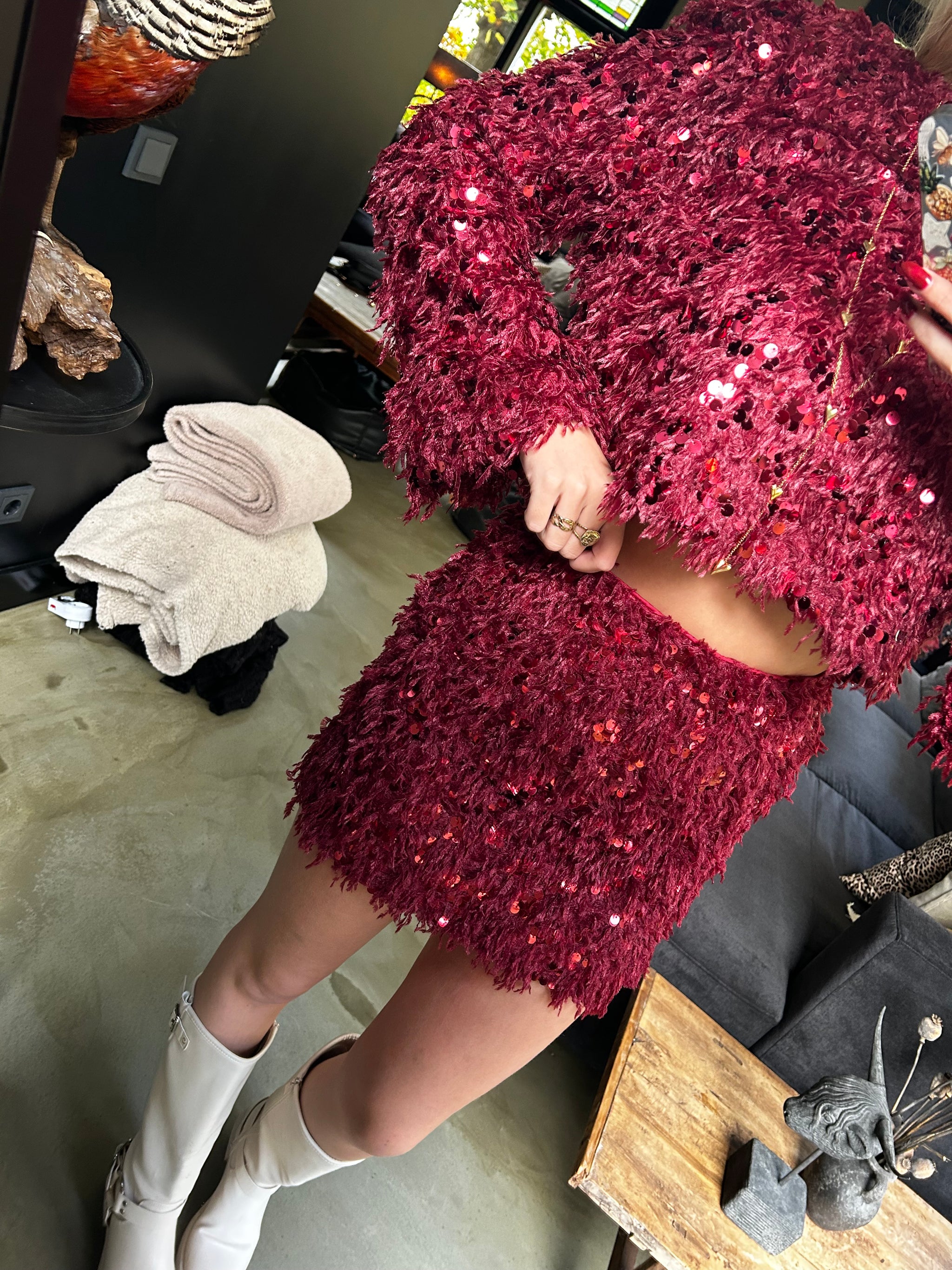Deze rok is versierd met prachtige pailletten en franjes die een speels en glam effect creëren. De aansluitende pasvorm accentueert je figuur, terwijl de stretchy stof fijn meebeweegt.