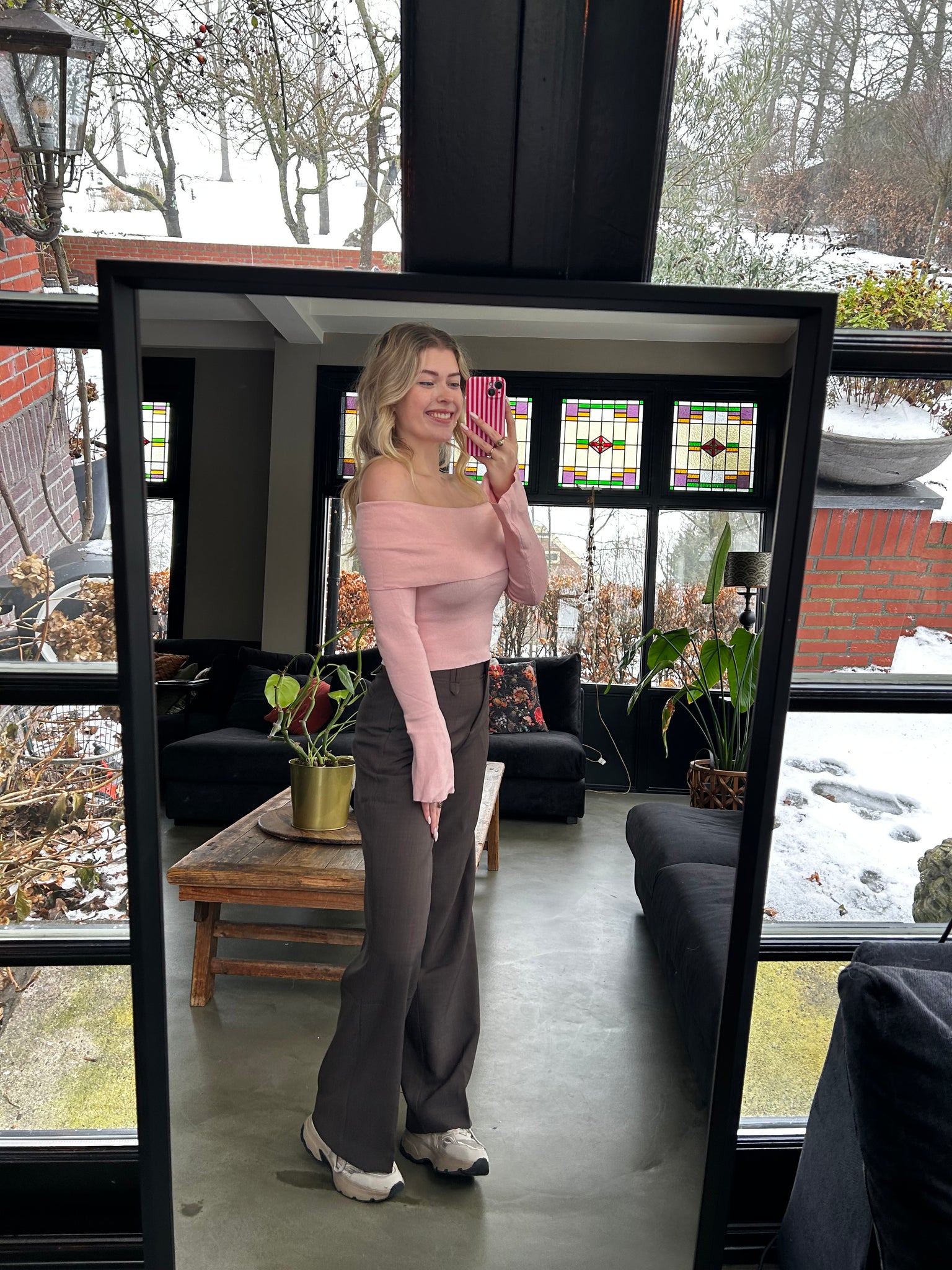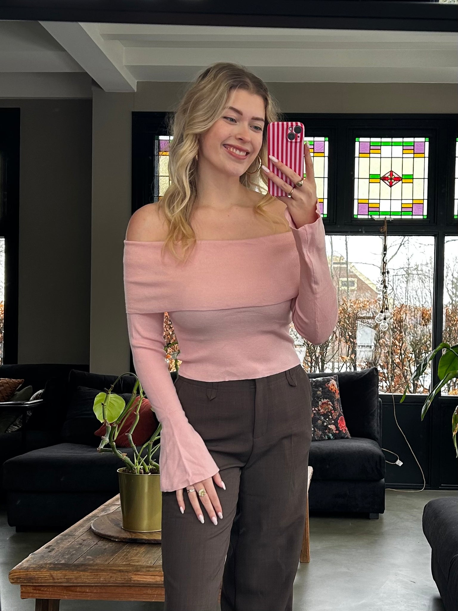 Deze top is perfect voor een frisse, trendy look. De off-shoulder halslijn geeft een speels en modern effect en laat je schouders mooi uitkomen. Dankzij de aansluitende pasvorm sluit de top mooi aan op het lichaam, terwijl de lange mouwen zorgen voor die extra touch!