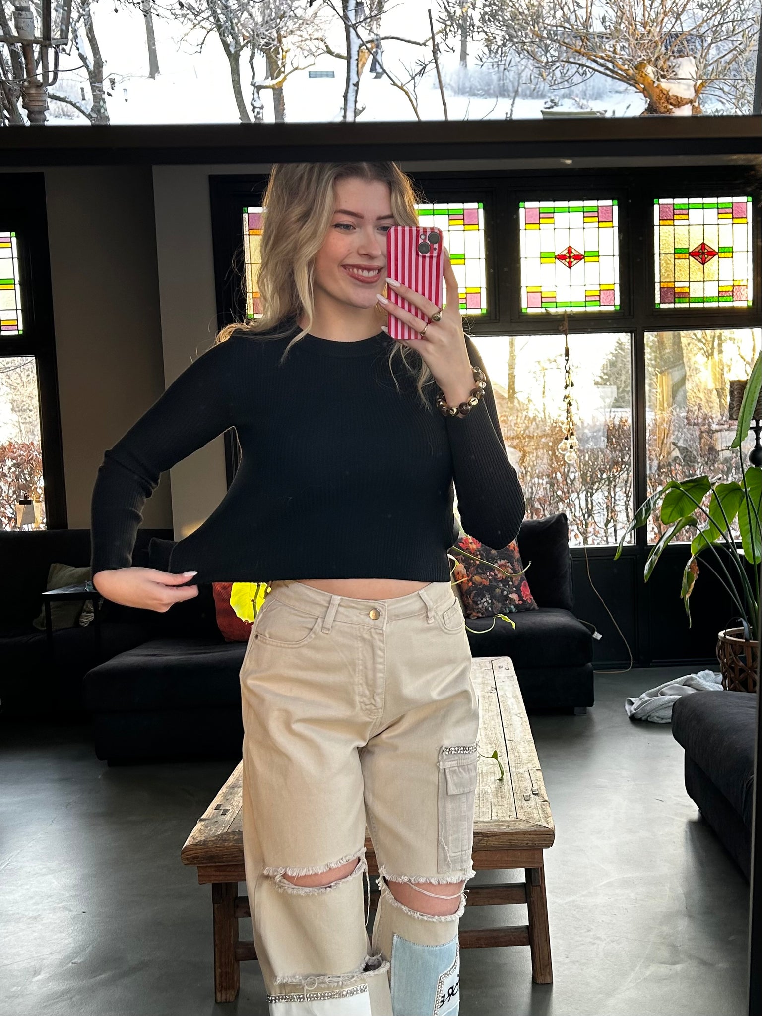 Een echte basic met power. Deze zwarte cropped top is gemaakt van een fijne ribstof die mooi aansluit en comfortabel meebeweegt. De lange mouwen en ronde hals zorgen voor een clean en tijdloos silhouet, terwijl de cropped lengte perfect combineert met een high-waist jeans of cargo broek. Ideaal als everyday essential, maar ook sterk genoeg om solo te dragen.