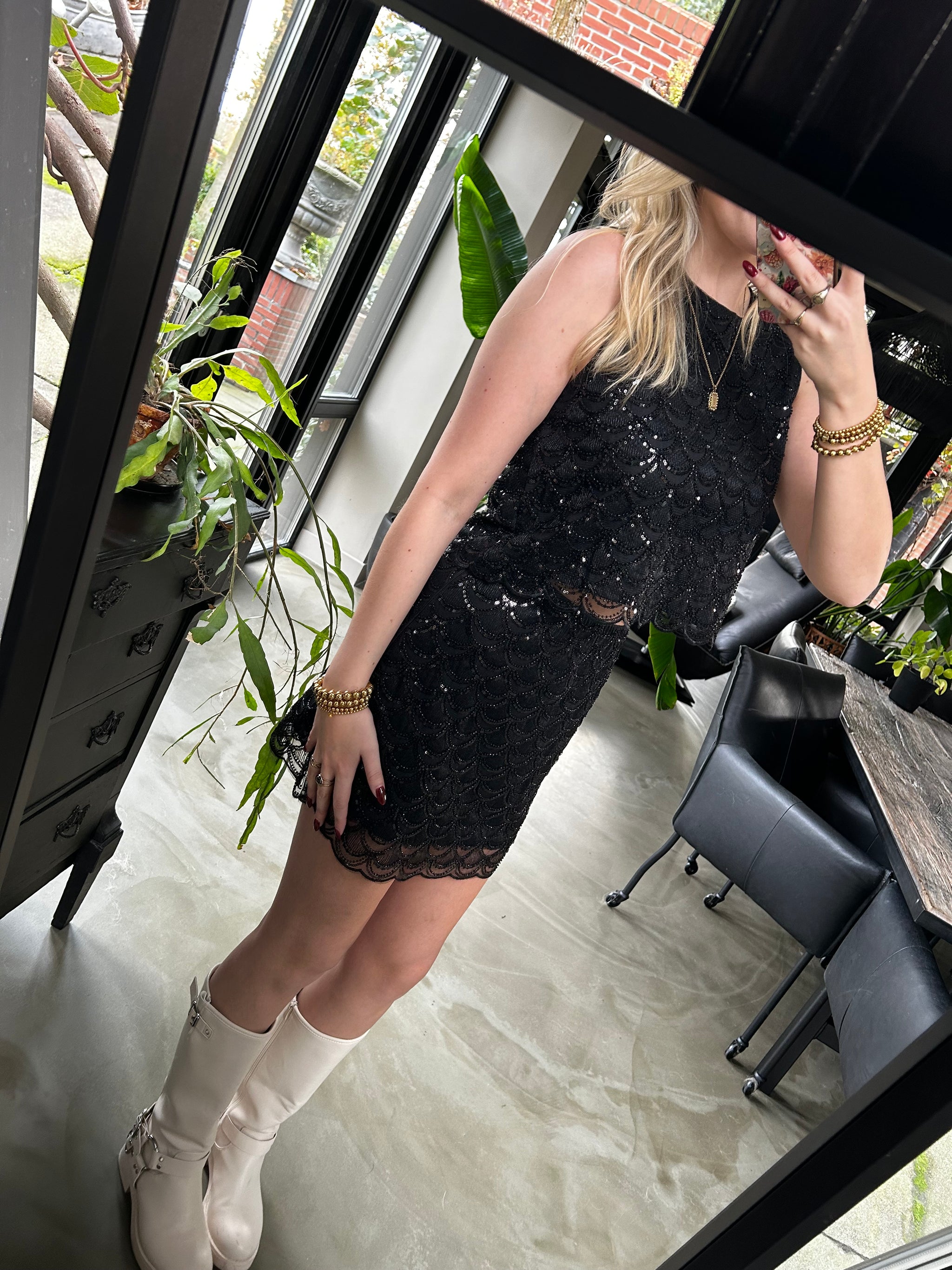 Deze kralen rok is een echte eye-catcher. De rok valt mooi aansluitend en is volledig voorzien van glinsterende kralen patroon die je outfit meteen feest-proof maken. Dankzij de comfortabele stretch blijft hij fijn zitten, zelfs tijdens een hele avond dansen.